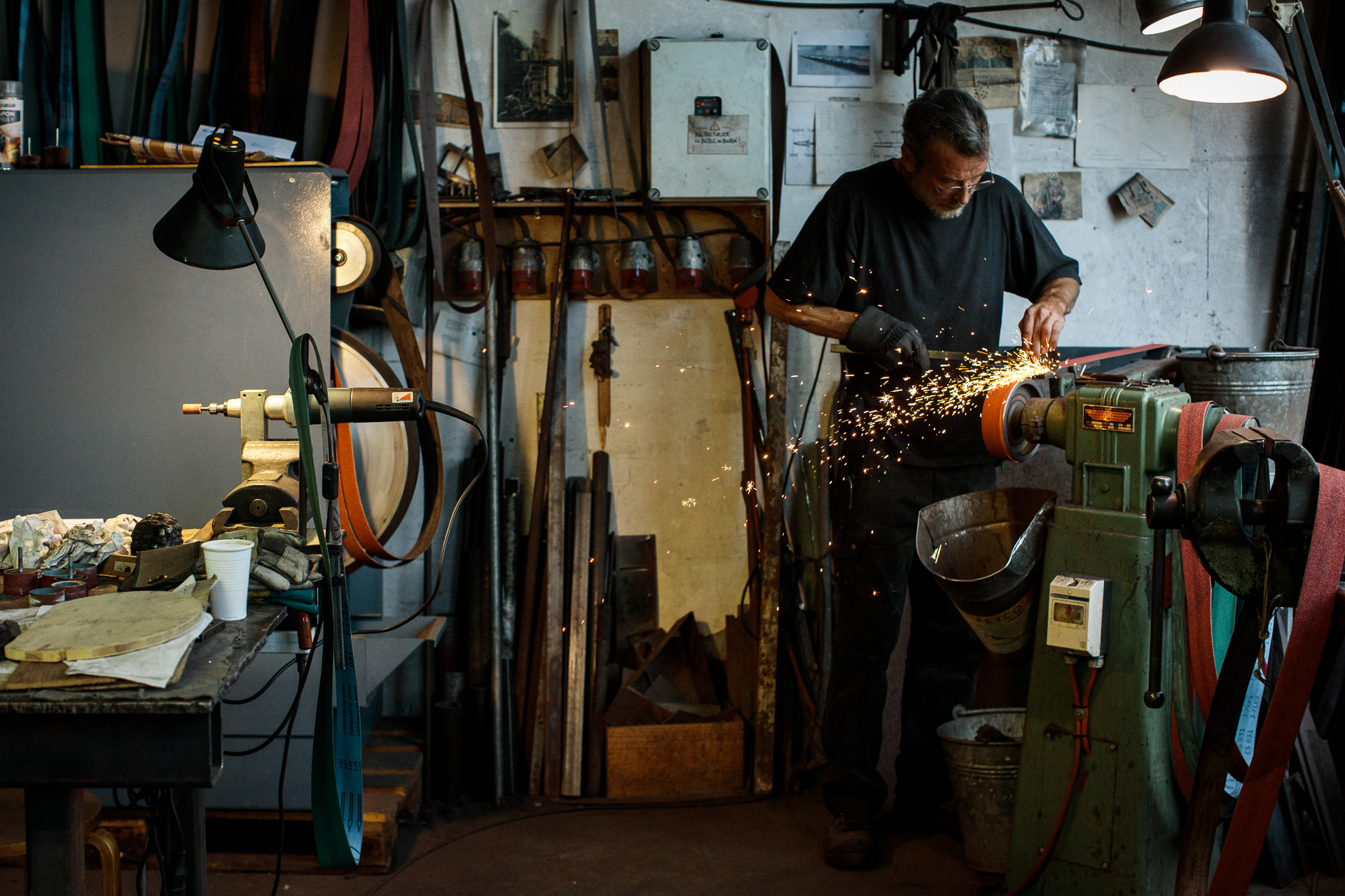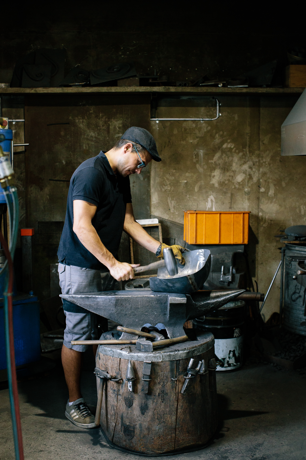 Pierre-André Tschantz a fondé sa forge à Bière, en 1982. C'était une forge de village classique. Il faisait un peu de tout: serrurerie, restauration, ferronnerie. Puis, ne pouvant plus porter de charges, il s'est mis à fabriquer des toupins. Son fils le rejoint et ils se sont spécialisés dans le toupin. Pierre-André est désormais à la retraite. C'est Anthony qui gère l'entreprise familiale.