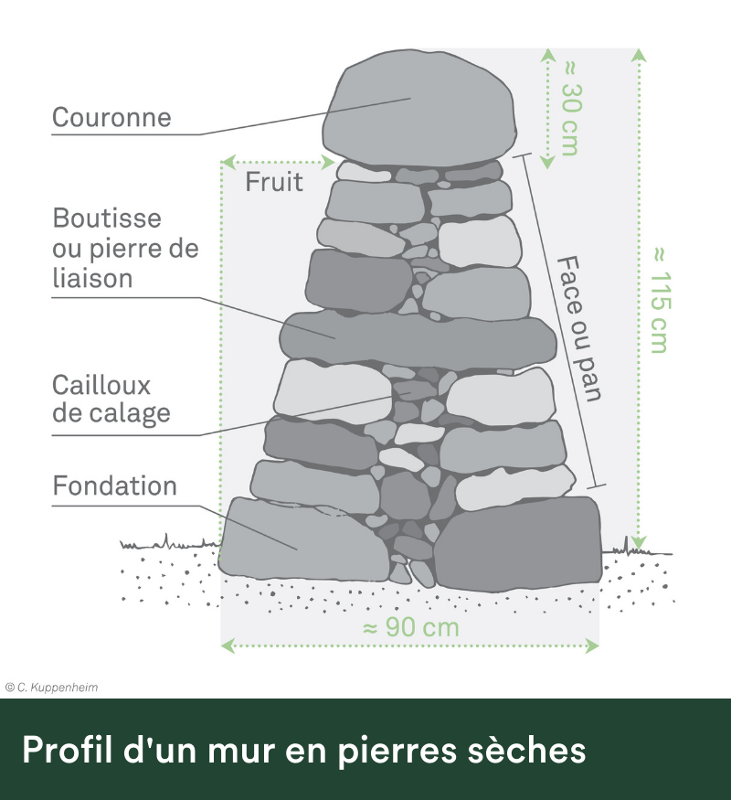 Pour qu'un mur en pierres sèches perdure dans le temps, les travaux de construction ou de restauration doivent respecter certaines principes :