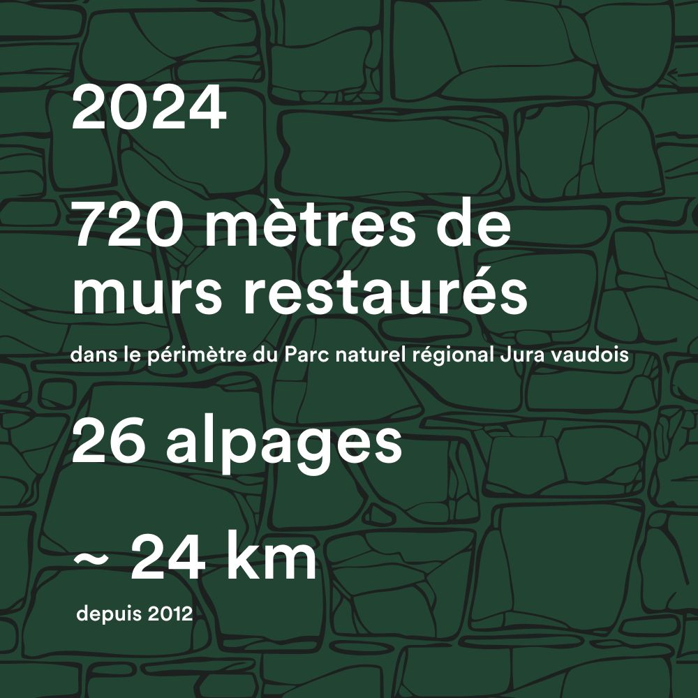 « Dans le Parc naturel régional Jura vaudois on recense plus de 690 kilomètres de murs en pierres sèches, dont près de 250 kilomètres dans les pâturages. »